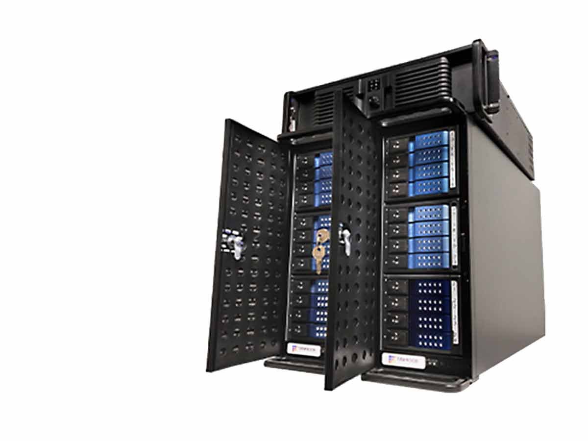 Ez a kulcsrakész, szerver minősítésű konfiguráció 24 kiszerelt SAS/SATA HDD/SSD lemez egyidejű és gyors, nagy volumenű törlésére lett megtervezve.